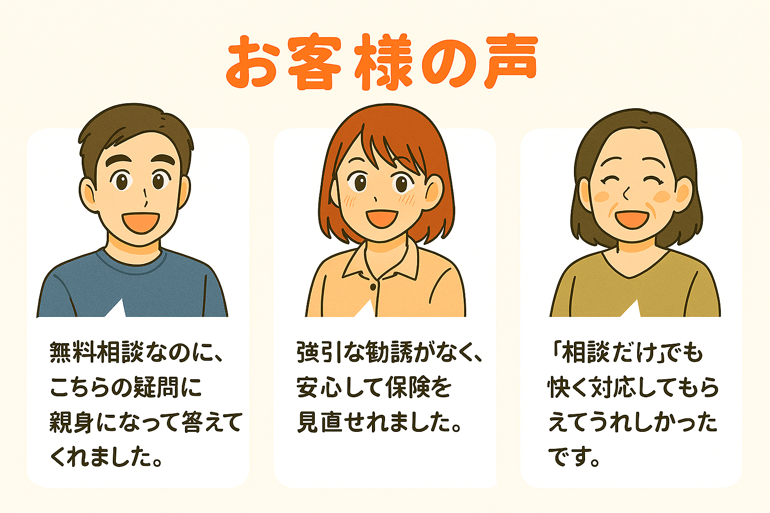 「保険の見直しで年間6万円も節約できました。もっと早く相談すればよかった!」(50代女性)